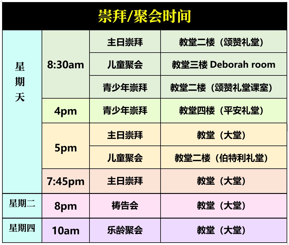 祷告会 儿童主日学 青少年 细胞小组 乐龄 12福 启发课程 布道 铃鼓舞